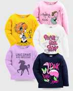 Kuchipoo Girls Printed Cotton Blend Regular T Shirt (Multicolor, Pack of 5)