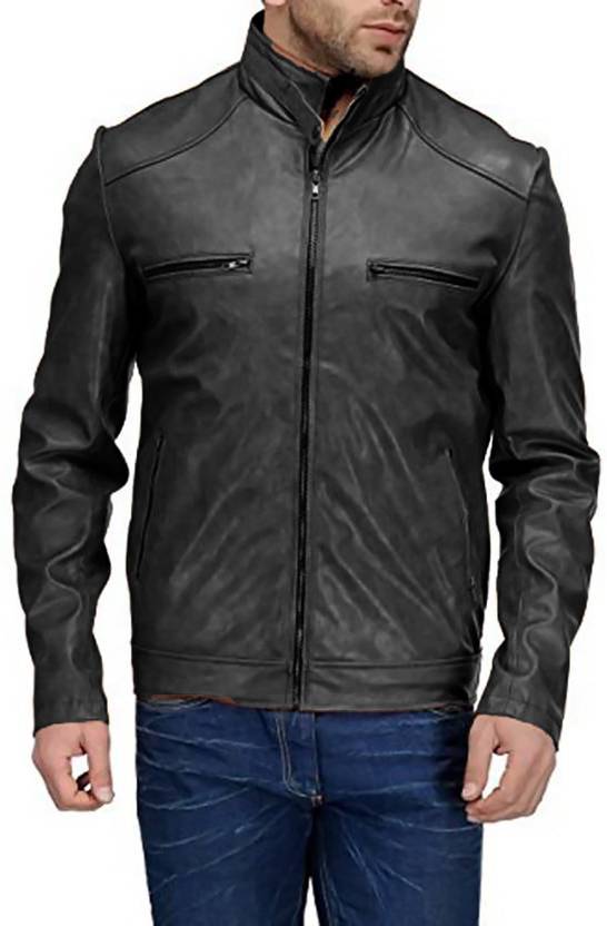 Men Solid Leather Jacket