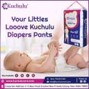 Kuchulu Present - Key Features Quick Max Absorption technology to provide quick absorption and lonf lasting dryness. The Diaper pants that provide Super Comfort, Super Dryness and Super Protection to the baby. Zig-Zag Channels Middle Layer - It provides a large absorbing area and facilitates uniform liquid distribution and thereby, uniform absorption. Active Gel Bottom Layer - It contains gel crystals of hydrophilic polymer which helps in maximun absorption. 3D leak guard - Soft expandable elastic on the sides help prevent side leakage by locking the liquid into the side pockets from where it again gets absorbed. All the above features ensure dryness that lasts up to 12 hours which means a peaceful night's sleep for both mother and baby. Ideal for babies weighing 4-8 KG Other Features U-shaped ergonomic design ensures a snug fit and maximizes. It helps prevent heaviness and sagging. Skin friendly breathable materials which are gentle on the baby's delicate skin and protect against rashes. Superior soft materials and wide elastic bands which ensure maximum comfort for the baby