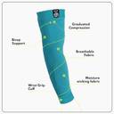 "Pain Relief and Optimum Protection: Arm sleeves offer compression for pain relief in conditions like tennis elbow, golfer's elbow, and carpal tunnel syndrome. This reduces swelling, eases pain, and enhances range of motion. Arm sleeves also provide protection from the sun, cold, and aid in recovery.