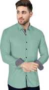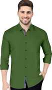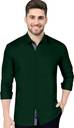 P & V Creations Men Solid Casual Dark Green Shirt