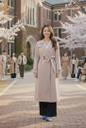 Kulanza Coat, women long coat Knee length Double Breasted with Belt and button All-Weather , Beige Grey Brown Camel color all age . winter coat women. college party casual formal blazer type gift all occasion western Fashion India