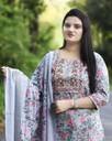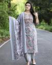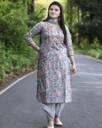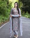 Boasting a round neck and three-quarter sleeves, this set's kurta is designed for comfort without sacrificing style. The thoughtful cut allows for easy movement, making it ideal for busy days or relaxed weekends. The accompanying pants offer a comfortable fit, while the ample-length dupatta provides versatile styling options.