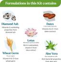 Kulsum’s Kaya Kalp Diamond Facial Kit contains four products - face cleanser, face scrub, face cream, and face pack. It helps purify, brighten and polish skin to provide a radiant glow. It also refreshes and rejuvenates the skin. It is suitable for normal to dry skin types. This kit includes several skin-boosting ingredients like diamond ash, dates, lotus, wheat germ oil, and aloe vera extract. This easy-to-use set up will help you get diamond-like bright skin. Use the instantly revitalising scrub formulated with diamond ash that helps to improve skin texture and make the skin supple while giving it a young glow. Clean and refresh your skin with Diamond Cleanser which is enriched with diamond ash and precious herbs. Formulated to cleanse the skin and help remove dirt, oil, pollution, and makeup. It removes impurities from the pores without disturbing the skin’s moisture balance. Diamond Cream is enriched with Vitamin E, diamond ash and almond oil to rejuvenate the skin. Remove dead skin cells and reveal your natural radiance with the Diamond Mask Face Pack. This mask is formulated with the extracts of aloe vera, diamond ash, wheat germ oil and minerals which enrich the skin with the nutrients it needs, leaving it fresh, alive & naturally young.