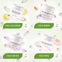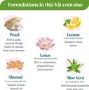 Look radiant and glowing with Kulsum's Kaya Kalp Skin Whitening Facial Kit as it offers the best skincare with amino acids, antioxidants, minerals, and vitamins. The Skin Whitening Face Cleanser contains Vitamin C, antioxidants, and anti-inflammatory properties from aloe vera & lemon. It helps to cleanse the skin of dirt, makeup, and pollutants, thus keeping the pores clear. The Skin Whitening Scrub contains amino acids, minerals, antioxidants, Vitamin C & E from lemon and almonds to deeply exfoliate the skin and remove dead cells. Skin Whitening Face Pack contains amino acids, minerals & calcium from pearl powder. It helps promote cellular repair and hydration. Skin Whitening Cream includes amino acids & flavonoids from pearl powder & lotus for hydration and cell repair.