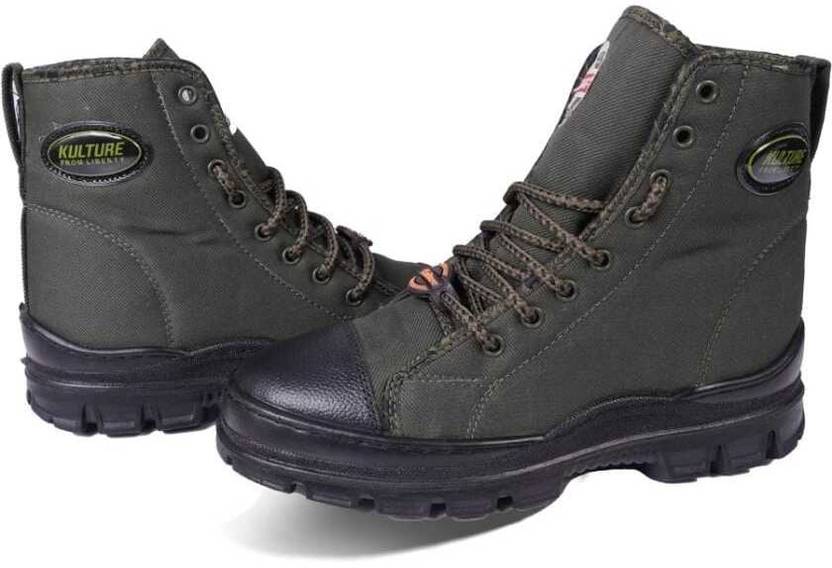 Jungle boots are a type of military footwear designed specifically for use in hot, wet, and tropical environments, such as jungles. These boots are typically made with a combination of materials that allow for breathability, durability, and quick drying, which are essential for the harsh conditions often encountered in jungle warfare or trekking.