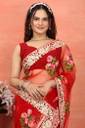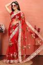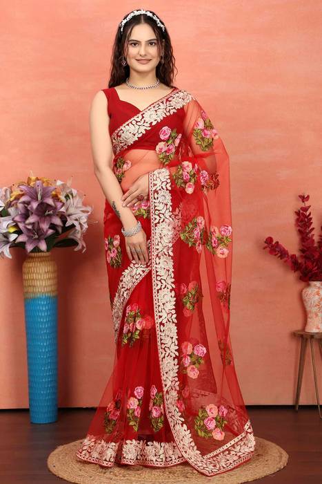 Embroidered Bollywood Net Saree (Red)
