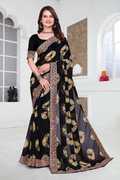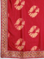 Sporting a design rooted in cultural motifs, this saree lends itself naturally to wedding ceremonies, festive gatherings, and traditional celebrations. The Bandhani-inspired print aligns with heritage aesthetics, while the sequins and embroidery provide a touch of occasion-ready sparkle. Styled with statement jewellery and classic footwear, this saree offers a complete festive look.
