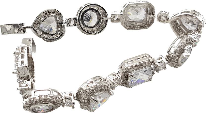 The intricately studded silver plated bracelet lends easy elegance to every outfit with its need-now attractive Korean stone setting, charming embellishment and design. It is durable and suitable for prolonged wear. This bracelet is easy to slip on with its loose style and adds a hint of glamor to the wrist. Make this the ultimate accessory you reach for with a black ensemble for a glamorous finish or with a pastel maxi for a daytime look.