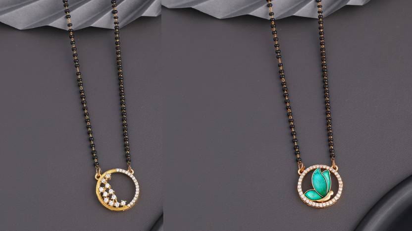 Pack of 2 Traditional American Diamond Gold Plated 18 Inch Short Daily Wear Mangalsutra Tanmaniya for Women.'Mangalsutra' – The Mark of Marriage ‘Mangal’ implies auspicious and ‘sutra’ denotes thread, both making the most significant symbol of marital bliss called ‘Mangalsutra’. Mangalsutra is an ornament of a woman denoting her marital status.We at Jewels modernised the traditional form of Mangalsutra to suit the modern woman and to glamorize your contemporary look.design Mangalsutras that can be worn as statement necklaces. Our jewelry is designed with fine craftsmanship and dedication to meet high expectations.Renew your life with the promise to make her your life!!!!Let your love knows the importance of the commitment, trust and real bond with Mangalsutras.