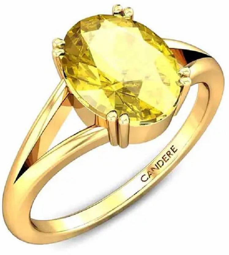 KUNDLI GEMS Hot Yellow Colour Citrine Ring Unisex Copper Citrine Gold Plated Ring