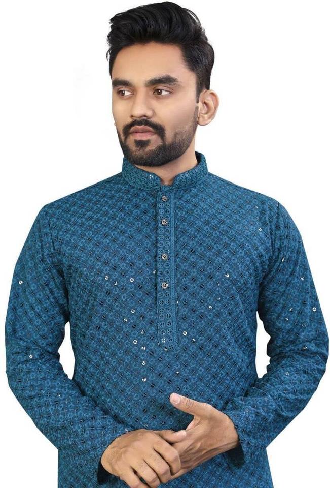 Hand Wash Only Fit Type: Relaxed HIGH QUALITY MATERIAL: Made from the cotton blend fabric. Lightweight and breathable material gives this kurta pajama set soft, comfortable feel. BEAUTIFUL HANDLOOM KURTA PAJAMA SET : This is a 2-pieces set that includes long button down shirt or kurta and a drawstring pajama. Traditional design on this kurta captures all of the details of the classic Indian men's garment with long sleeves, COMFORTABLE FIT: Sizing is designed for a regular relaxed fit. Collar: Mandarin, Sleeves: Full, Length: Knee length Kurta, Occasion: Casual, Party, Festival and Special Occasions, Package content: Kurta Pajama set for Diwali Fancy Kurta Pyjama Having Vibrant Color and Attractive design.