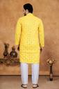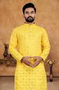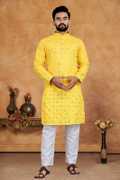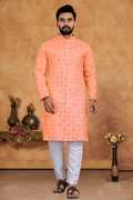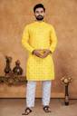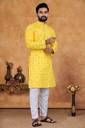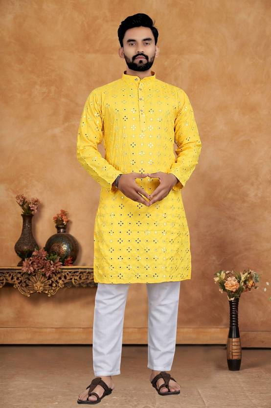 Hand Wash Only Fit Type: Relaxed HIGH QUALITY MATERIAL: Made from the cotton blend fabric. Lightweight and breathable material gives this kurta pajama set soft, comfortable feel. BEAUTIFUL HANDLOOM KURTA PAJAMA SET : This is a 2-pieces set that includes long button down shirt or kurta and a drawstring pajama. Traditional design on this kurta captures all of the details of the classic Indian men's garment with long sleeves, COMFORTABLE FIT: Sizing is designed for a regular relaxed fit. Collar: Mandarin, Sleeves: Full, Length: Knee length Kurta, Occasion: Casual, Party, Festival and Special Occasions, Package content: Kurta Pajama set for Diwali Fancy Kurta Pyjama Having Vibrant Color and Attractive design.