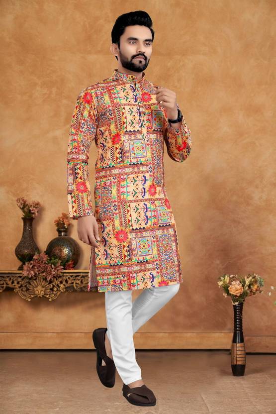 BEAUTIFUL HANDLOOM : Traditional design on this kurta captures all of the details of the classic Indian men's garment with long sleeves, COMFORTABLE FIT: Sizing is designed for a regular relaxed fit. Collar: Mandarin, Sleeves: Full, Length: Knee length Kurta, Occasion: Casual, Party, Festival and Special Occasions, Package content: Kurta for Diwali Fancy Kurta Having Vibrant Color and Attractive design.