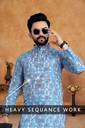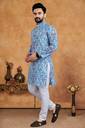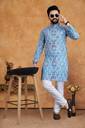 Kunj Creation Men Printed Straight Kurta (Blue)