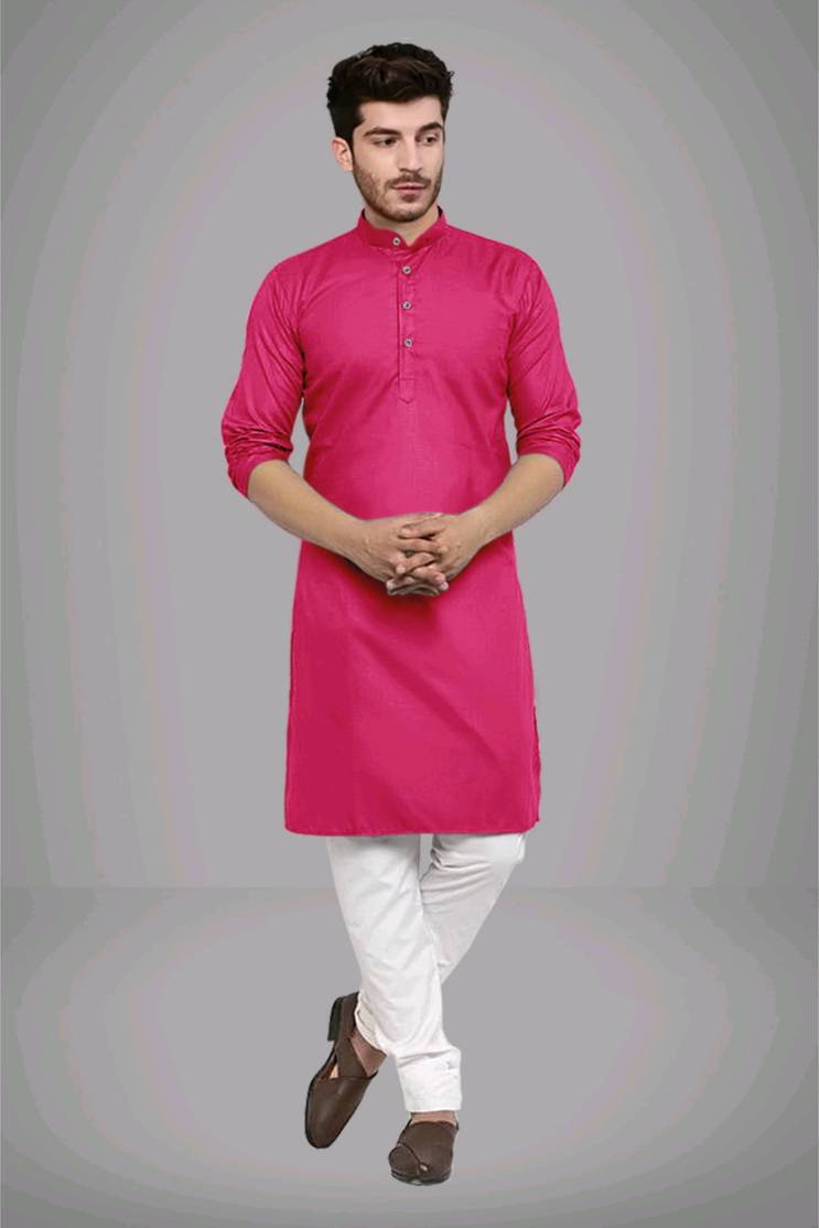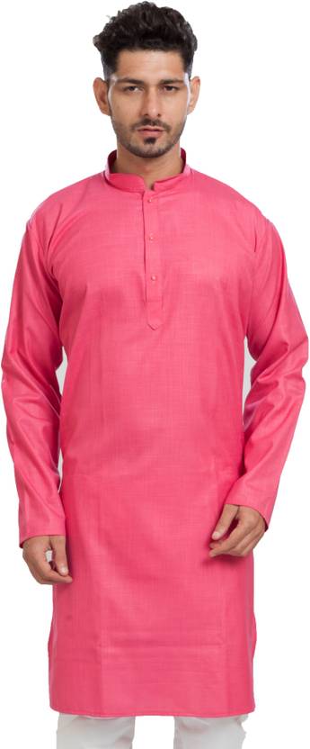 Kunj Creation Men Solid Straight Kurta (Pink)