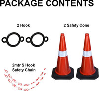 Boasting a pictogram type 2 hook and S hook safety chain, these traffic cones are designed for practical use and secure placement. The pictogram type 2 hook allows for the easy attachment of signs or additional markers, while the S hook safety chain ensures that these cones stay in place and can be linked together for added stability. This design helps maintain order and prevents these cones from being moved or knocked over unintentionally.