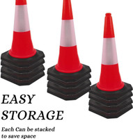 Featuring a reflective collar, these traffic cones enhance visibility, especially in low-light or nighttime conditions. The reflective material ensures that these cones are easily seen by drivers and pedestrians, improving safety and preventing accidents. Sporting a rubber bottom, these cones provide stability and prevent tipping, even in windy conditions. The rubber base also helps to absorb impact, reducing the risk of damage. Thanks to their easy storage design, these cones can be stacked compactly, making them convenient to transport and store when not in use.