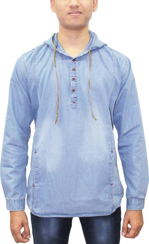 This denim hoodie Shirt by Kuons Avenue is a must have style for your wardrobe. This hoodie Shirt, has a hooded Collar, full Sleeves with Patch Pocket on Chest, Curved Hemline, Contrast Piping Details. Complete the look by pairing it with the stylish pair of jeans or chinos when going for a casual date or just for your daily use.