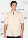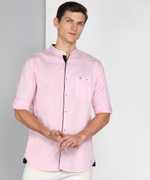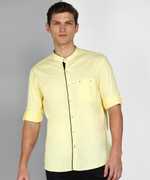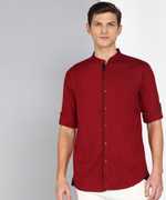 This Linen Cotton Shirt by Kuons Avenue is a must have style for your wardrobe. This Casual Shirt, has a Mandarin Collar,Full Sleeves with Roll Pattern, Patch Pocket on Chest, Curved Hemline, Contrast Piping Details. Complete the look by pairing it with the stylish pair of jeans or chinos when going for a casual date or just for your daily use.