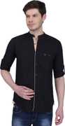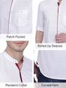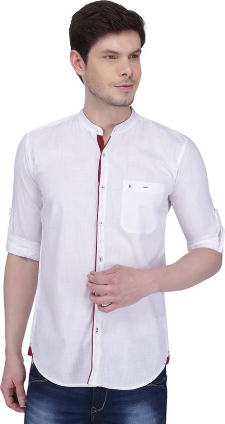 This Linen Cotton Shirt by Kuons Avenue is a must have style for your wardrobe. This Casual Shirt, has a Mandarin Collar,Full Sleeves with Roll Pattern, Patch Pocket on Chest, Curved Hemline, Contrast Piping Details. Complete the look by pairing it with the stylish pair of jeans or chinos when going for a casual date or just for your daily use.