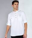 Men Solid Cotton Linen Pathani Kurta (White)