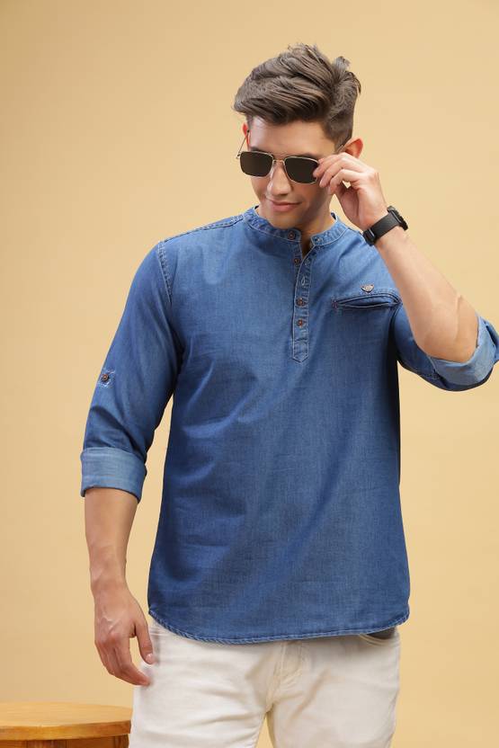 This Denim Cotton Short Kurta by Kuons Avenue is a must have style for your wardrobe. Complete the look by pairing it with the stylish pair of jeans or chinos when going for a casual date or just for your daily use.