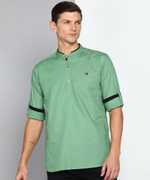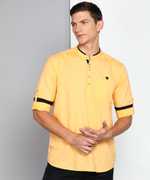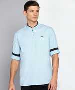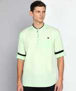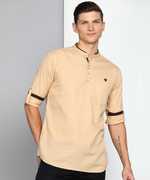 This Linen Cotton Short Kurta by Kuons Avenue is a must have style for your wardrobe. This Casual Kurta, has a Mandarin Collar, Full Sleeves with Roll Pattern, Patch Pocket on Chest, Curved Hemline, Contrast Piping Details. Complete the look by pairing it with the stylish pair of jeans or chinos when going for a casual date or just for your daily use.