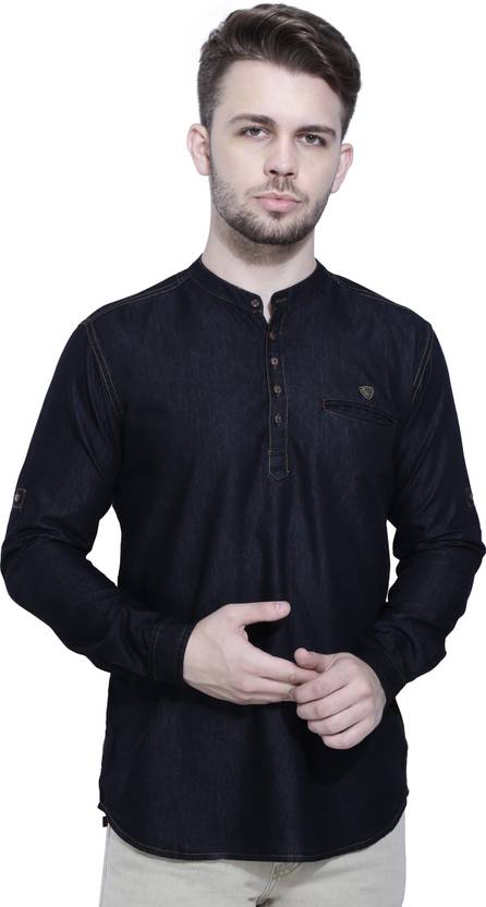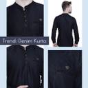 Denim Party Casual Kurta, Slim Fit, Full Sleeve, Solid Self Pattern