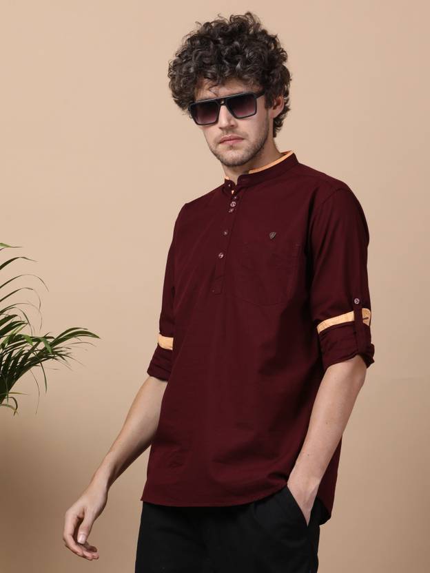 This Linen Cotton Short Kurta by Kuons Avenue is a must have style for your wardrobe. This Casual Kurta, has a Mandarin Collar, Full Sleeves with Roll Pattern, Patch Pocket on Chest, Curved Hemline, Contrast Piping Details. Complete the look by pairing it with the stylish pair of jeans or chinos when going for a casual date or just for your daily use.