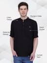 KUONS AVENUE Men Solid Cotton Linen Straight Kurta (Black)