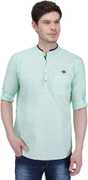 This Linen Cotton Short Kurta by Kuons Avenue is a must have style for your wardrobe. This Casual Kurta, has a Mandarin Collar, Full Sleeves with Roll Pattern, Patch Pocket on Chest, Curved Hemline, Contrast Piping Details. Complete the look by pairing it with the stylish pair of jeans or chinos when going for a casual date or just for your daily use.
