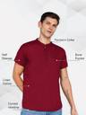 KUONS AVENUE Men Solid Cotton Linen Straight Kurta (Maroon)