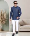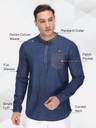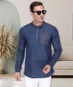 This Denim Kurta by Kuons Avenue is a must have style for your wardrobe. This Short Kurta, has a Mandarin Collar, Full Sleeves with Single Cuff, Welt Pocket on Chest & Curved Hemline. Complete the look by pairing it with the stylish pair of jeans or chinos when going for a casual date or just for your daily use.