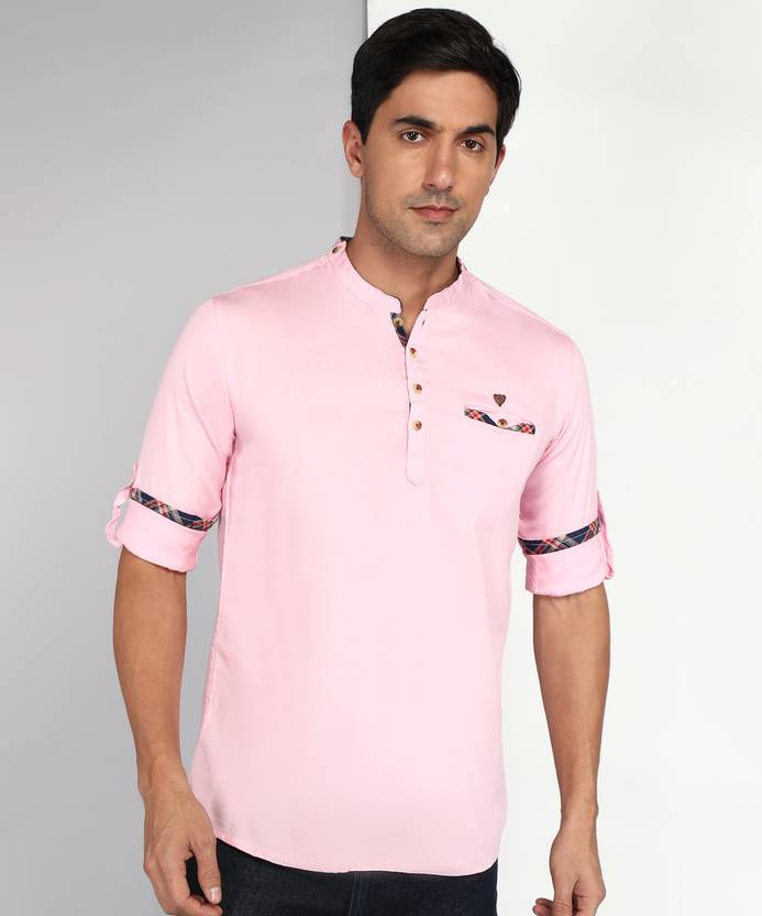 KUONS AVENUE Men Solid Pure Cotton Straight Kurta (Pink)