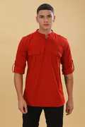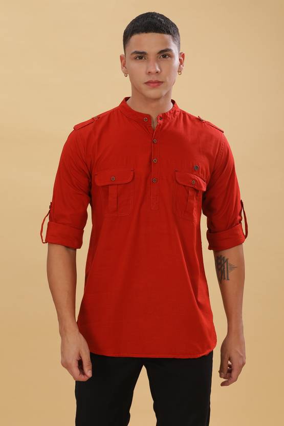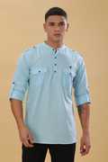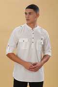 This Linen Cotton Kurta by Kuons Avenue is a must have style for your wardrobe. This Pathani Kurta, has a Mandarin Collar, Full Sleeves with Roll Up, Double Flap Pocket on Chest & Curved Hemline. Complete the look by pairing it with the stylish pair of jeans or chinos for Festive and daily use.