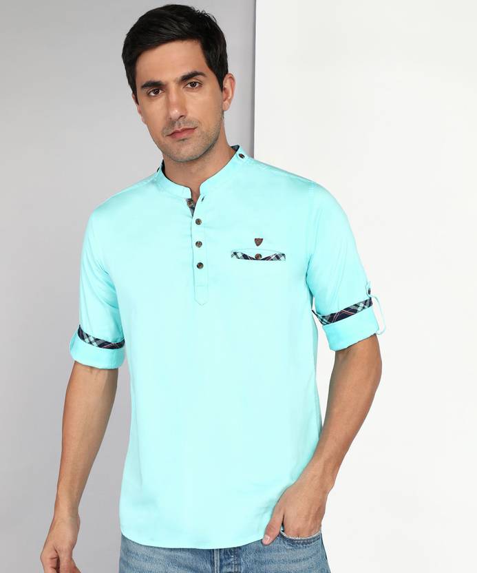 This Cotton Short Kurta by Kuons Avenue is a must have style for your wardrobe. This Casual Kurta, has a Mandarin Collar, Full Sleeves with Roll up Pattern, Welt Pocket on Chest, Curved Hemline. Complete the look by pairing it with the stylish pair of jeans or chinos when going for a casual date or just for your daily use.