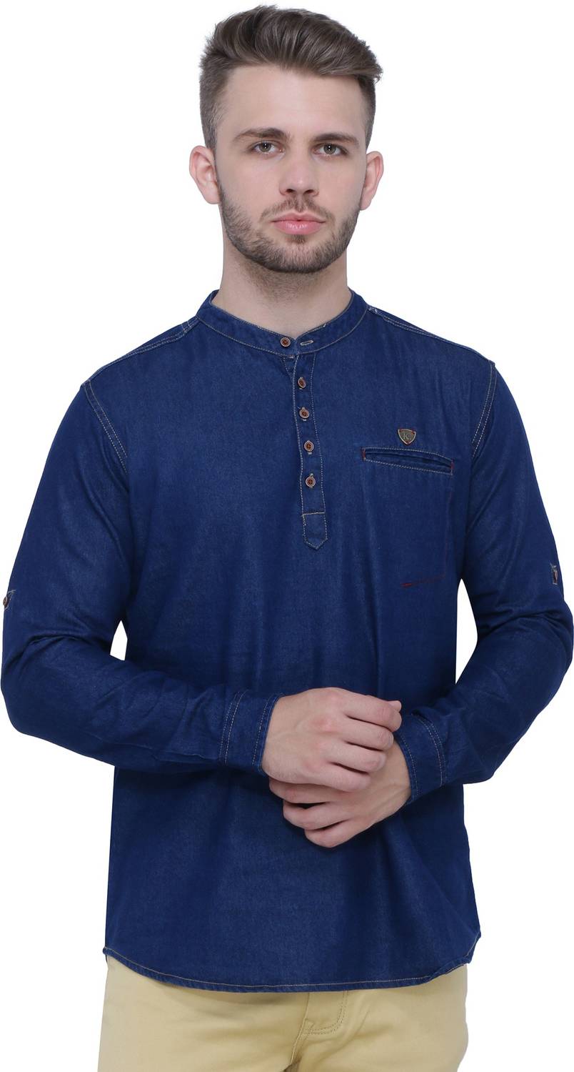 Denim Party Casual Kurta, Slim Fit, Full Sleeve, Solid Self Pattern