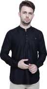 KUONS AVENUE Men Solid Cotton Blend Straight Kurta (Dark Blue)