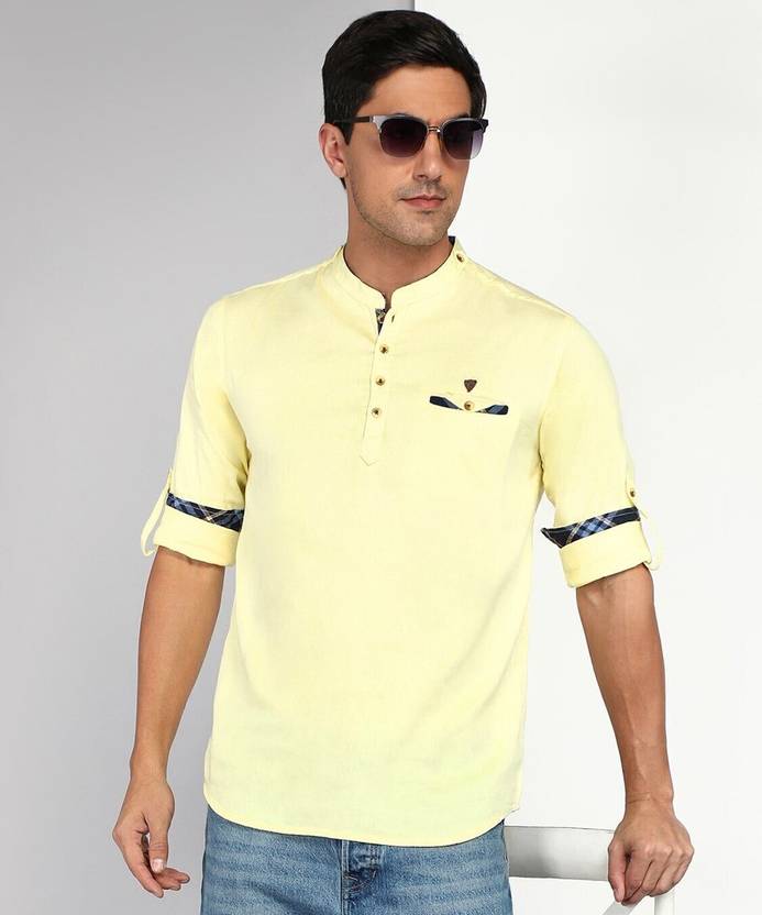 This Cotton Short Kurta by Kuons Avenue is a must have style for your wardrobe. This Casual Kurta, has a Mandarin Collar, Full Sleeves with Roll up Pattern, Welt Pocket on Chest, Curved Hemline. Complete the look by pairing it with the stylish pair of jeans or chinos when going for a casual date or just for your daily use.