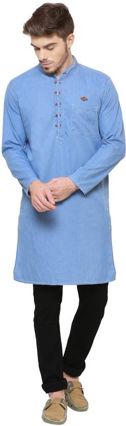 Denim Party Casual Kurta, Slim Fit, Full Sleeve, Solid Self Pattern