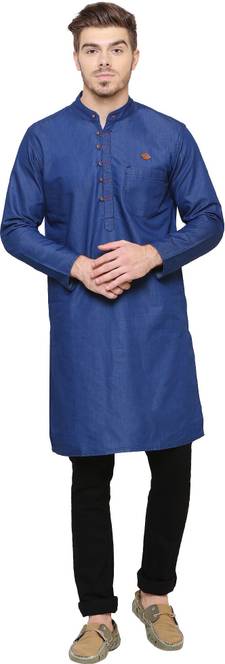 Denim Party Casual Kurta, Slim Fit, Full Sleeve, Solid Self Pattern