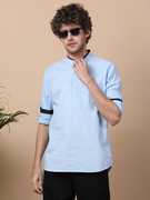 This Linen Cotton Short Kurta by Kuons Avenue is a must have style for your wardrobe. This Casual Kurta, has a Mandarin Collar, Full Sleeves with Roll Pattern, Patch Pocket on Chest, Curved Hemline, Contrast Piping Details. Complete the look by pairing it with the stylish pair of jeans or chinos when going for a casual date or just for your daily use.