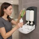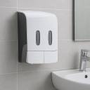 KURIC Heavy Duty ABS Wall Mount Dual Twin Soap Dispenser for Bathroom (500 + 500)- 1000 ml Soap, Liquid, Conditioner, Gel, Sanitizer Stand, Shampoo, Lotion Dispenser (White)