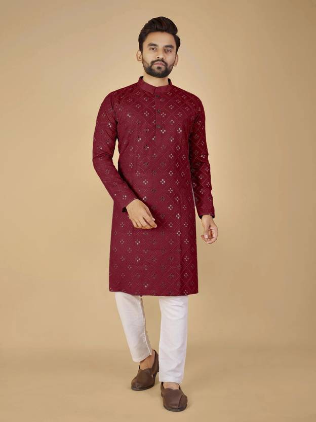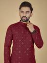 ORIFAB Men Embroidered Straight Kurta (Maroon)