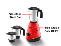 The long-lasting ABS body of the mixer grinder ensures its life. Superior SS 304 is used to make the blades and jars for ultrafine blending and grinding. includes PP covers that are leak-proof.