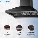 The wall-mounted design of the Kutchina Chimney offers easy installation and hassle-free use. Wall-mounted type chimneys soak up all the dirt, grime, oils and odours from the food directly, without allowing it to escape. The instructions about the installation and other technical information are provided in the user manual for your ease and comfort. The chimney can be fitted on the kitchen wall by a professional electrician or technician. Note that the company does not provide installation services.