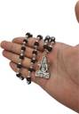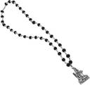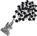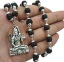 Kuttumb Gems & Jewels Natural Rudraksha Mala in Silver Polished Caps, 5 Face Rudraksha Necklace Silver Beads Brass, Wood Locket Set