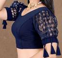 100% Cotton Lycra Full Stitched Lycra Blouse for women with Embroidery and Sequence Work On Sleeve, Stretchable Lycra Blouse With Stylist Sleeve (28 to 36, S M L XL Sizes Available)