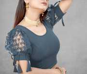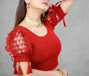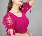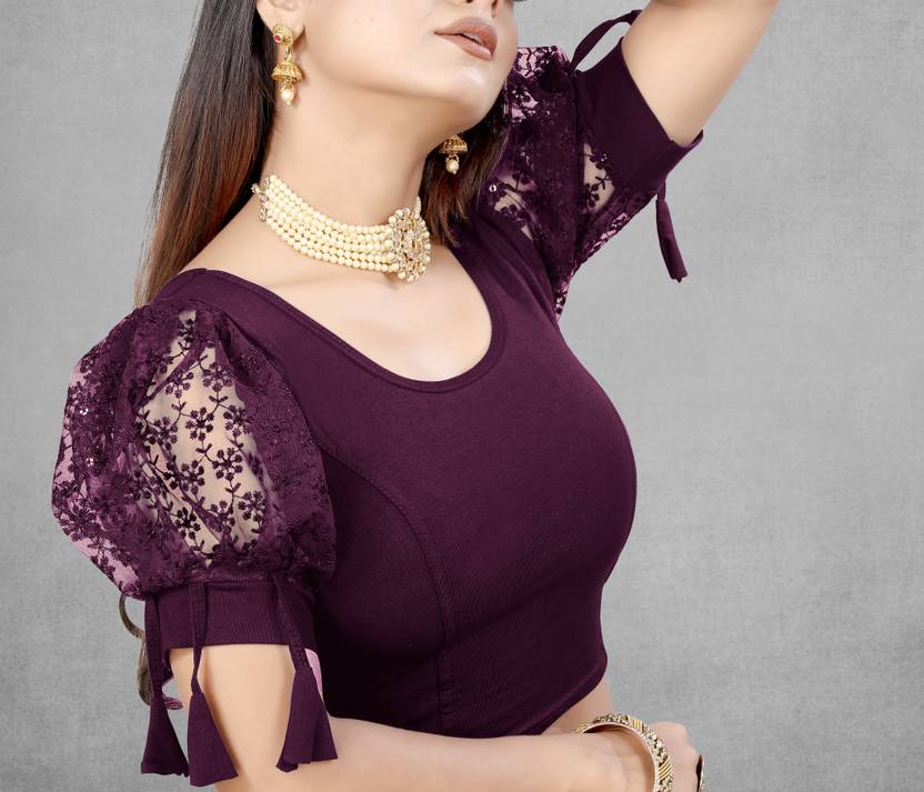 100% Cotton Lycra Full Stitched Lycra Blouse for women with Embroidery and Sequence Work On Sleeve, Stretchable Lycra Blouse With Stylist Sleeve (28 to 36, S M L XL Sizes Available)